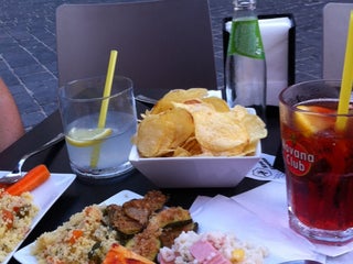 Efficient and friendly service. Wide choice of cocktails and beers. For €0.50 more of the price of your drink, you can have access to the all you can eat tapas buffet in the evening..