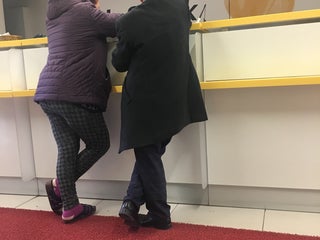 Bir gişe görevlisinin çalışıp diğerlerinin sohbet ettiği banka...