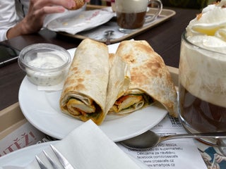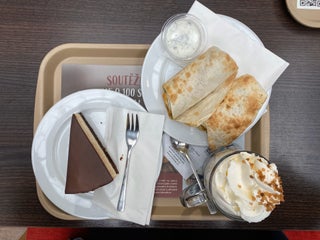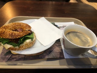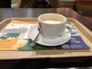 Washy, overpriced flat-white. Old, stale sandwiches. Cherry/chocalate muffin is ok.