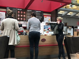 Girls here are sleeping on their feet. I waited for 20 min for them to warm up a panini. Turns out they burned the first one so they had to prepare another one :) I guess they need some coffee :D