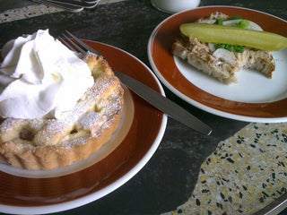Domácí koláče, francouzský koláč se sýrem, domácí mošty, ... Doporučuju