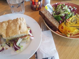 Nice lunch spot. They have omelette, fresh bakeries and fresh salad. Finnish with waffles and cappuccino!