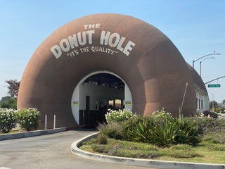 Best giant donut-shaped building in Los Angeles, Randy's included. Drive on through the double donut tunnel and get yourself a sweet.