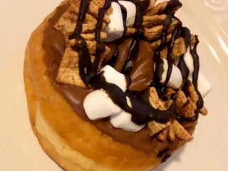 The treats are garnished with whimsical toppings like M&M's and Cinnamon Toast Crunch, and there's a chocolate bar that's coated in an extraneous blanket of chocolate chip.