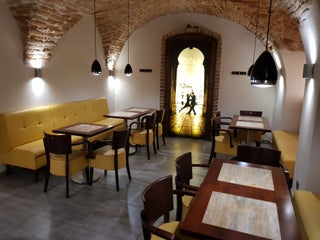 V pohodě kavárna s vyššíma cenama, hnusným vnitřkem a dobrýma zákuskama a jídlem. Karty neberou. / Okay café with a big choice of good food, a bit expensive and the interior isn't very nice. No cards.