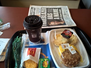 The coffee is surprisingly good. I didn't eat anything on that visit as their breakfast fare doesn't appeal to me.
