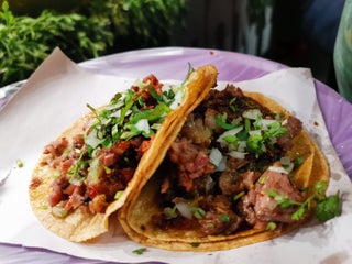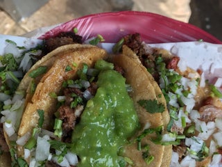 ricos tacos mis preferidos suadero y lengua. Te atienden en tu auto