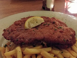 Das urbane Lokal mit gemütlichem Biergarten bietet bayerische Kost und ist für seine großen Schnitzel bekannt.