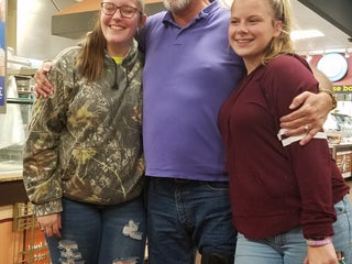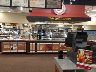 Steak, fresh fried fish, salad bar, waitress staff