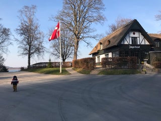 Fik kalvemørbrad med morkelsauce, virkelig lækkert. Hyggeligt interiør og skøn udsigt over Furesø.