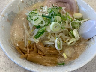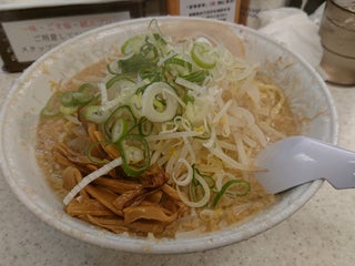 辛ねぎ醤油ラーメン+大盛。アブラは普通で二郎標準って感じ。麺は中麺であるが二郎と比較すると細く、結構食べやすかった。