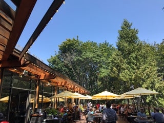 Don't be fooled by its appearance, this place doesn't have a view. You'll be starring at the trees. Food is quite pricey too.