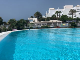 Muy interesante estar mojandote y contemplar el aterrizaje de los aviones.