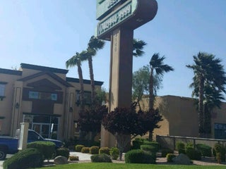 Low budget & shady vibe but dogs allowed. Bonus: next door to Stoney's which is a fun cowboy hang; also close to big equestrian dome & airport.