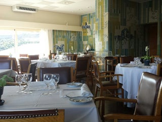 Vistas para o rio. Restaurante. Sala da lareira.