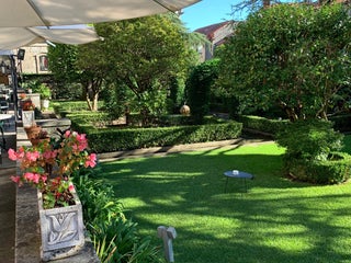 Buena terraza y un jardín muy cuidado y bonito. Excelente atención de los camareros. Un lugar muy tranquilo para pasar un rato agradable :)