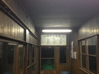 かつては有人駅で30分毎に一本すれ違いがあり、快速も止まる駅だったのに。廃止にならないことを祈るばかり。▼トイレは使用不可▼ドアは進行方向一番前だけが開きます。ドアを開ける時はボタンを押す。整理券を取るのを忘れぬよう。